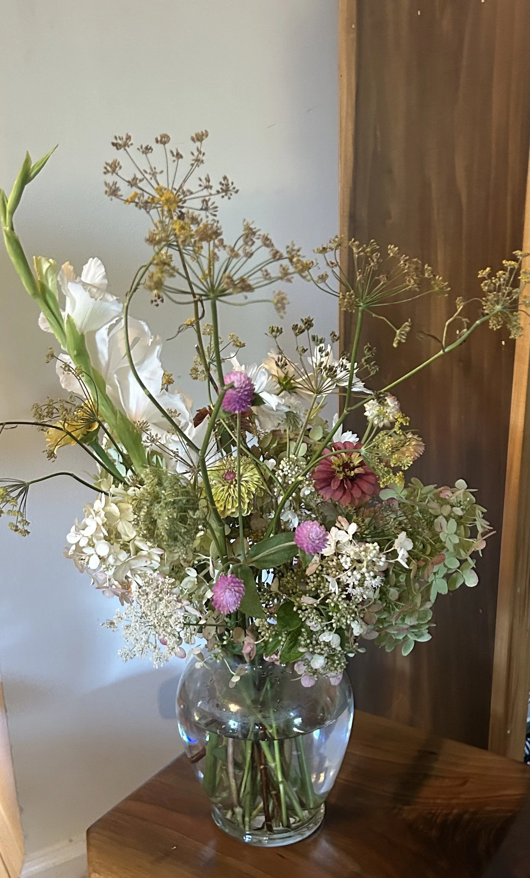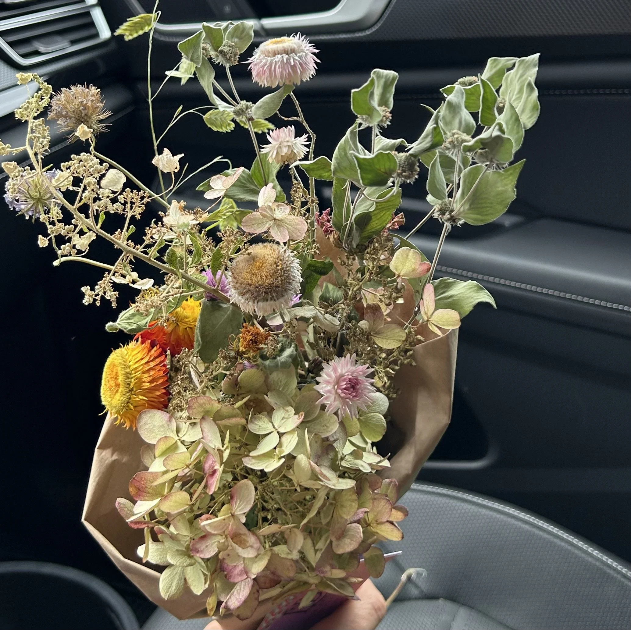 Gift card from $25.00 Flower garland $20.00 Dried flower bouquet $20.00 Small flower arrangment $60.00 Medium flower arrangement $75.00 Large flower arrangement $100.00 Spring Bouquet CSA $250.00 Sold out